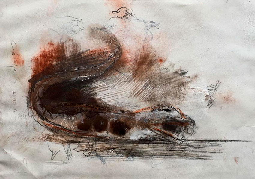 Povoado por figuras fantásticas e memórias delirantes. Com traço expressivo e imaginação fértil, transforma o sonho, o desejo e a inquietação humana em composições densas que mesclam lirismo e desassossego.